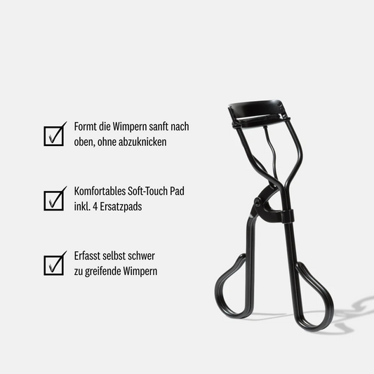 Wimpernserum und Wimpernzange für lange, geschwungene Wimpern